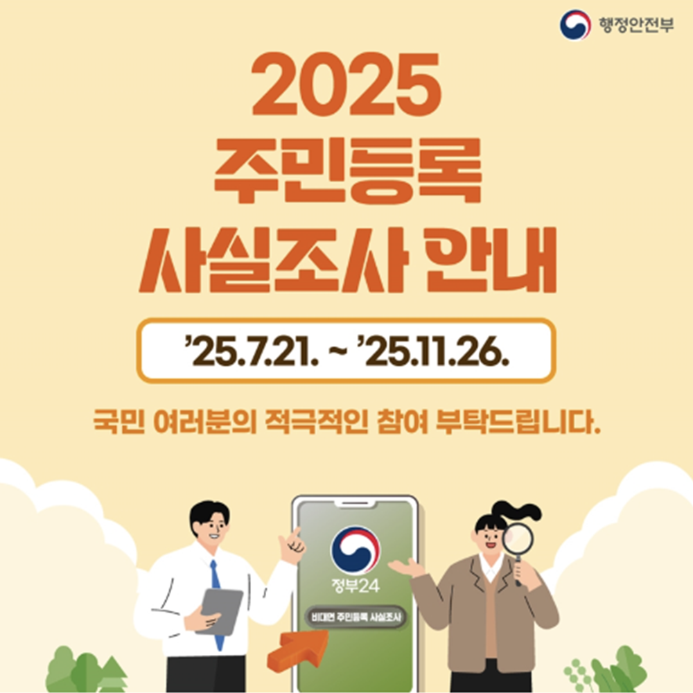 2025년 주민등록 사실조사가 7월 21일부터 10월 23일까지 전 국민을 대상으로 시행됩니다. 주민등록지와 실거주지 일치 여부를 확인하는 중요한 조사로, 국가 정책의 기초자료로 활용됩니다.