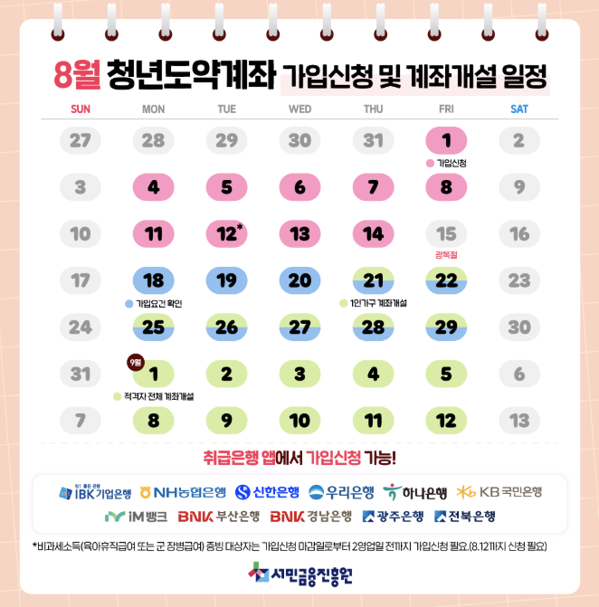 - 은행 앱 접속 → 청년도약계좌 메뉴 선택