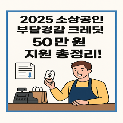 2025년 새롭게 시행되는 소상공인 부담경감 크레딧 50만 원 지원사업은 경제적으로 어려운 시기에 소상공인 여러분께 실질적인 도움이 될 수 있는 정책입니다.