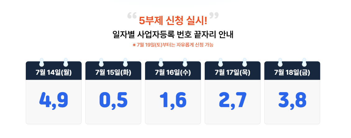 - 부제 신청제 운영: 사업자등록번호 끝자리별 지정된 날짜에 신청